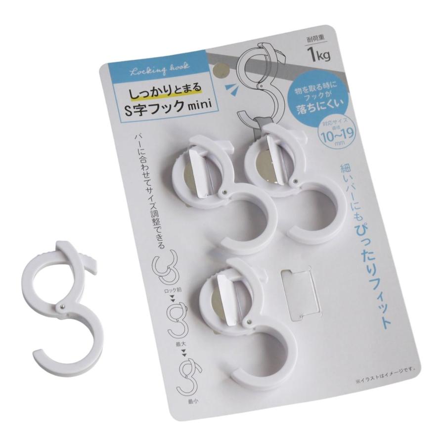 しっかりとまるS字フック mini 4個入 (100円ショップ 100円均一 100均一 100均)