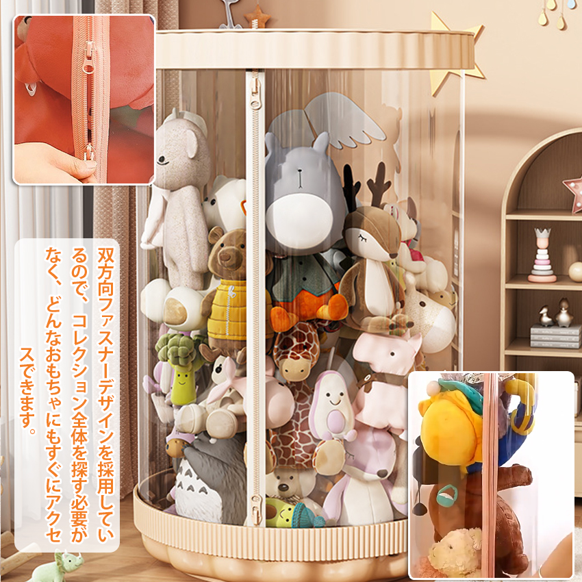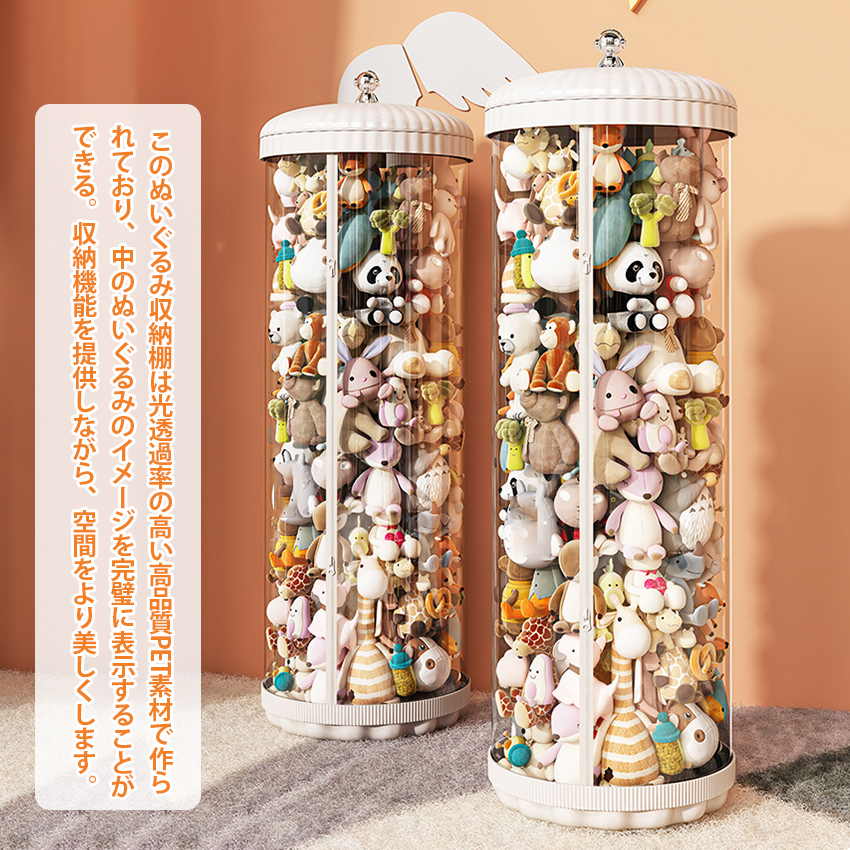 ■このぬいぐるみ収納棚は光透過率の高い高品質PET素材で作られており、中のぬいぐるみのイメージを完璧に表示することができる。収納機能を提供しながら、空間をより美しくします。