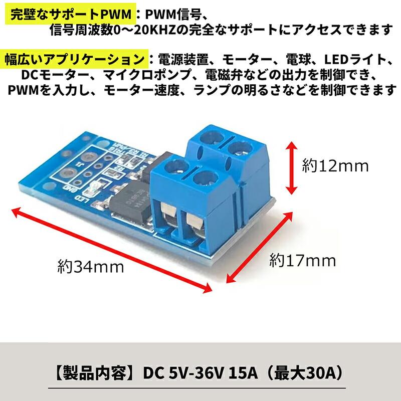 幅広いアプリケーション:電源装置、モーター、電球、LEDライト、DCモーター、マイクロポンプ、電磁弁などの出力を制御でき、PWMを入力し、モーター速度、ランプの明るさなどを制御できます