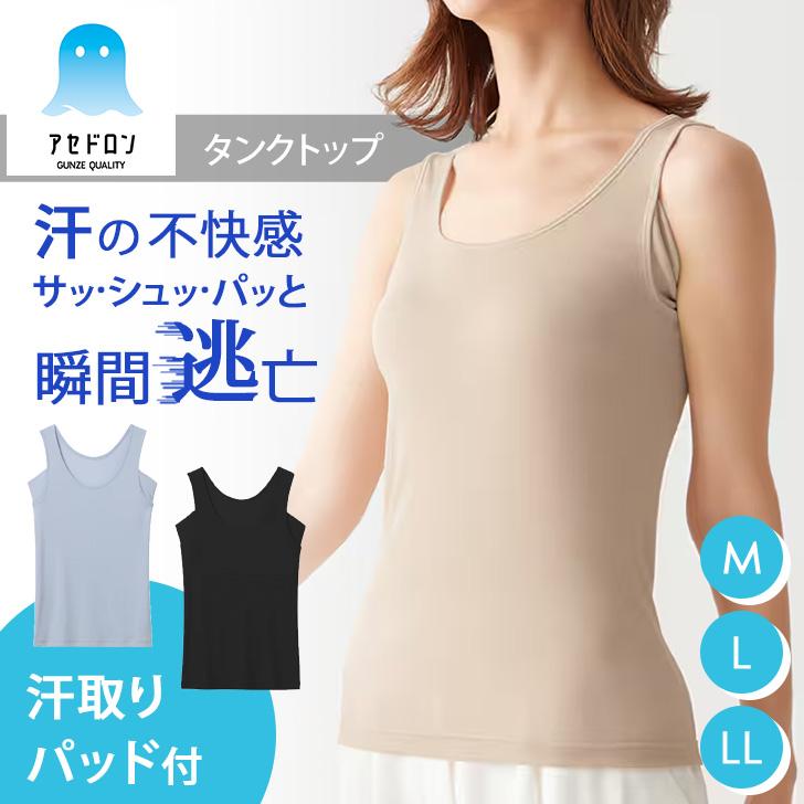 グンゼ GUNZE アセドロン タンクトップ 汗取り付き 肌着 下着 レディース 抗菌 防臭 吸汗速乾 吸湿 ドライ 通気性 汗対策 トップス MC0053N