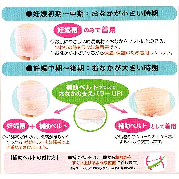 補助ベルト付きで妊娠初期〜後期まで着用できます。
