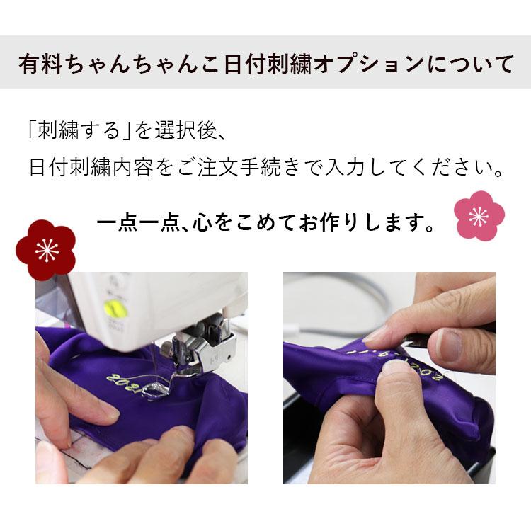 ちゃんちゃんこの背中に日付けを入れられる際は、必ず有料のオプション「刺繍する」を選択後、日付刺繍内容をご注文手続きで入力してください。