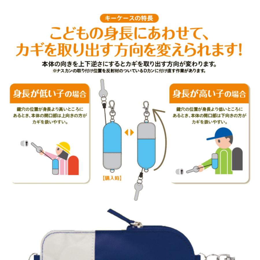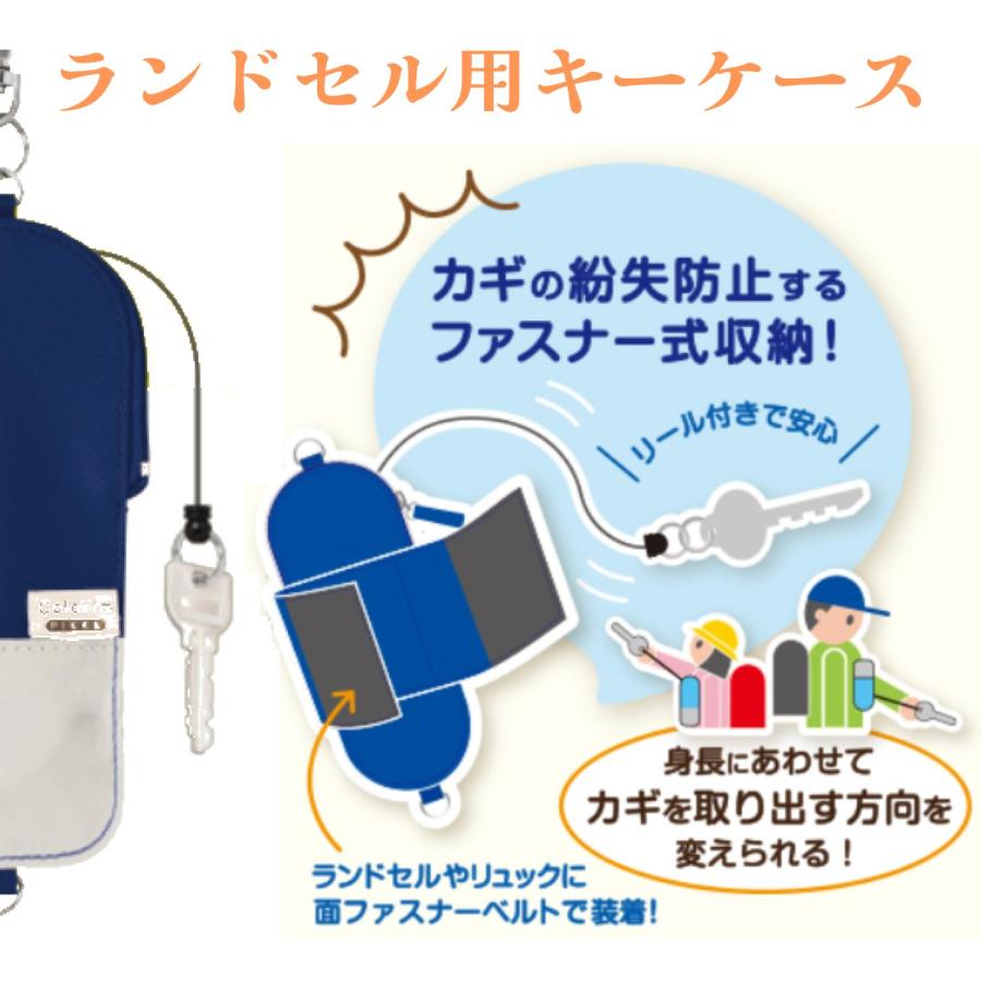 リール付きキーケース ランドセルの肩ベルトに装着可能 小学生 中学生 鍵の紛失防止ポケット型