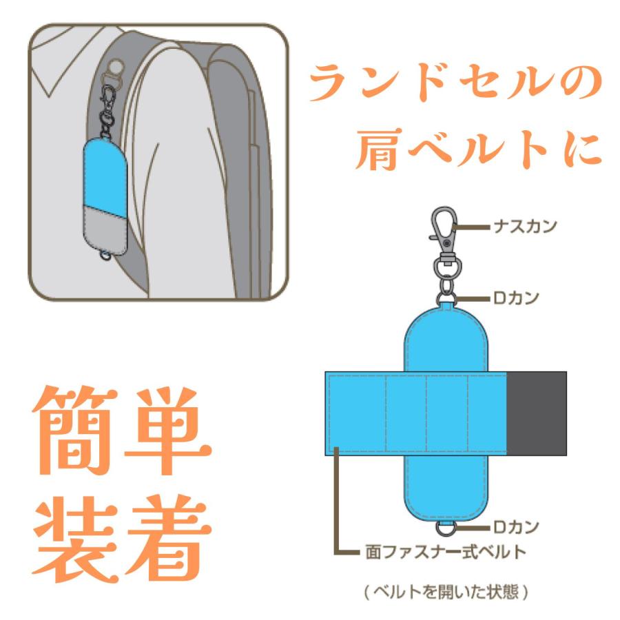 ランドセルやリュックへの装着が簡単な面ファスナーベルト式。