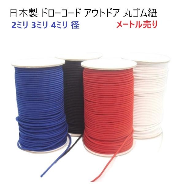 ドローコード アウトドアゴム マルヒモタイプ、径3ミリ カラータイプ