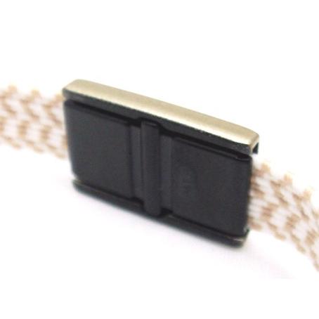 また、別売りのゴムテープ用接続バックルでミシンや針糸を使わず簡単にベルト状態にすることができます。 もちろん、PPテープなどのように縫い止め加工もできます。