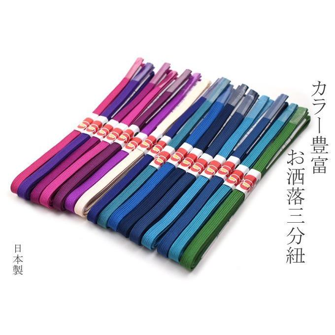 カラーバリエーション豊富なお洒落な三分紐です。帯留めとのバランスがいい、最もベーシックな組み紐です。