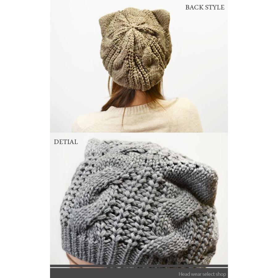 今期人気のアニマルイヤー!ケーブル編みのボリューミーなシルエットなので深く被っても浅く被ってもかわいく決まる☆いつものコーデにプラスするだけで遊び心を感じるスタイリングに♪伸縮性があるのでフィット感もgood!厚みがあるザックリとしたニット帽は、防寒もバッチリです。素材:アクリル100%フリーサイズ(レディース用)