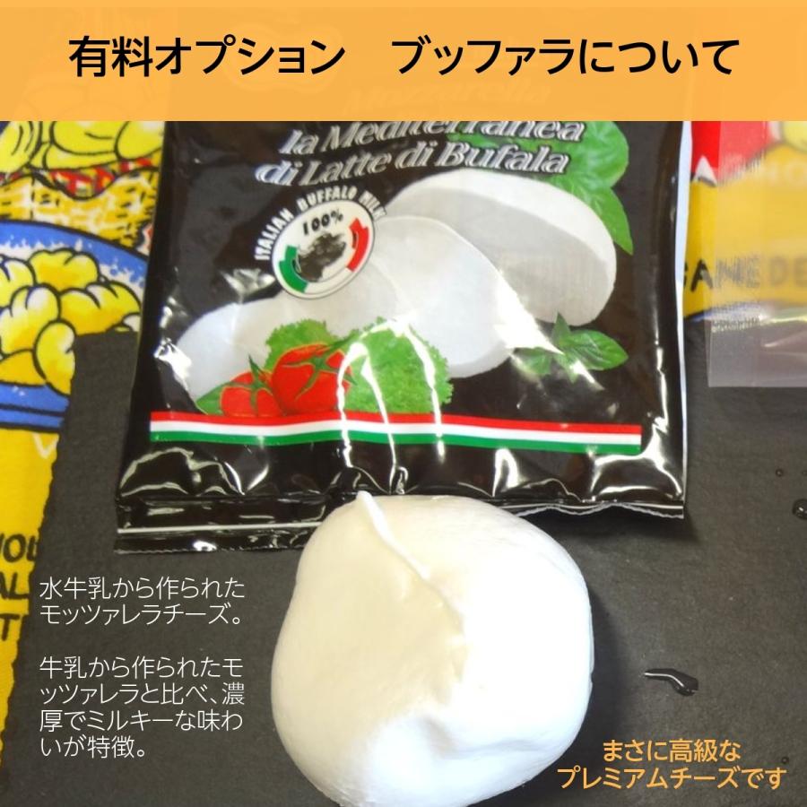 ※追加有料オプションで「ブッファラ(水牛チーズ)、「ミックスチーズ」を同梱できます。