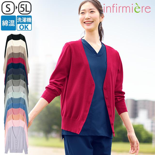 ナースカーディガン 綿混 ナース カーディガン レディース 看護 介護 事務 アンファミエ 自宅で洗える!なめらか綿混Vネックカーディガン(レギュラー丈)