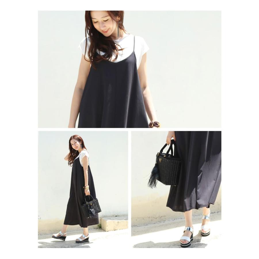 サラサラの手触りと、シンプルでストンと落ちる綺麗なシルエットのキャミワンピースは、「接触冷感」素材を使い、ひやっと快適な着心地の「COLD TOUCH」を使用。