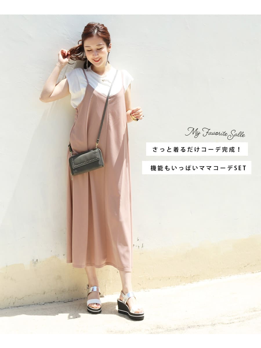 暑い季節を快適に過ごせる機能素材&綺麗に着られるワンピース&授乳Tシャツ2点コーデセットです。