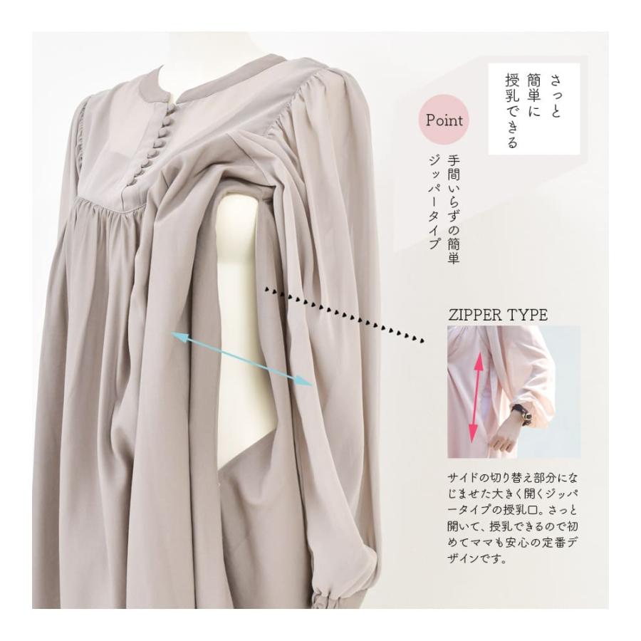 ックなデザインをふんだんに盛り込んだ、透明感いっぱいの授乳ワンピースです。