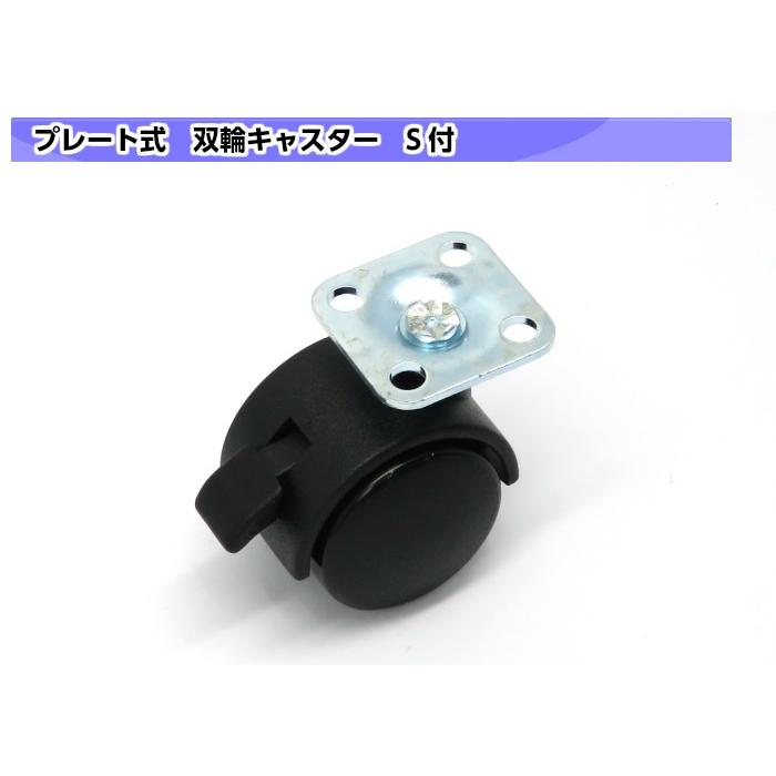 双輪キャスター 30mm ブラック ストッパー付 プレート式 DIY便利 交換 キャスター車輪