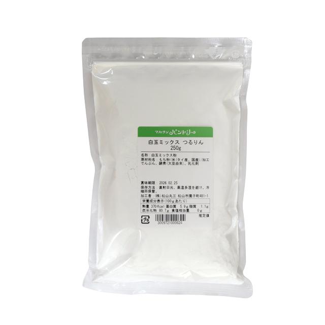 つるりん100gに、水100mlを注ぎ、こねて丸めてゆでると簡単に白玉だんごが作れます。今までにない、ソフトで口どけの良い食感です。冷蔵保存しても、柔らかいまま。冷凍も自然解凍でOKです。