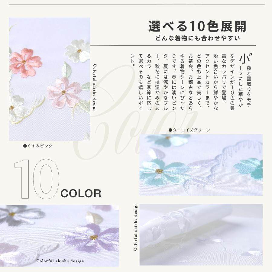 刺繍半襟コレクション 高級な刺繍の半衿です。メーカーから直接仕入れることにより、大幅なコストカットを実現しました。桜のシンプルな柄が特徴の刺繍半衿です。 成人式の振袖や結婚式、卒業式、入学式等の訪問着にも合わせやすい半衿です。おしゃれ着にも◎半衿は肌に触れる部分であり、襦袢をよごれから守る役割もあります。シワや型崩れしにくい洗えるポリエステル素材。※ご自宅でもお洗濯可能ですが、襦袢に縫い付けられている場合はドライクリーニングをお勧めします。ポイント利用