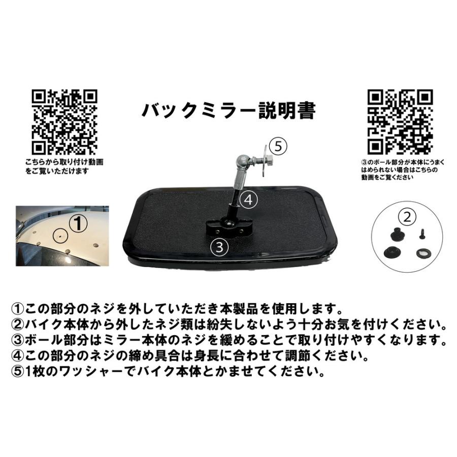 ホンダのジャイロキャノピー(TA03/TA02)に対応したバックミラーです。車体への穴あけが不要で、初心者でも簡単に取り付けられる説明書が付属しています。大きめのミラーで後方確認がしやすく、身長に合わせて調節可能です。