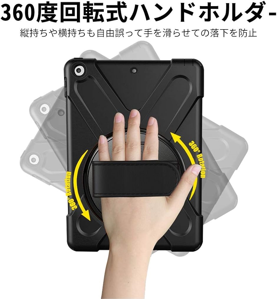 ・iPad 8世代 ケース-「スタンドとハンドホルダー」:360度回転&段階調節可能スタンドによって、動画視聴やゲーム、仕事などの作業が楽に行えるようになりました。
