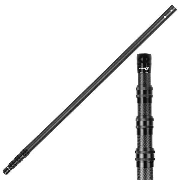 DOBEN カーボン製プールポール 伸縮式 1.14m-3.65m 無段階調節可能 スキマーネット、レーキ、ブラシ、掃除機ヘッドをホースで接続可能