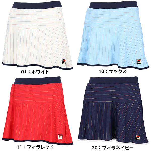 レディース テニスウェア スコート 軽い肌触りのスクエアメッシュがベースのレインボーボーダー素材。レインボーボーダーを縦使いにして裾周りをすっきり魅せてくれるスコート。【メーカー】フィラ FILA【カラー】01:ホワイト、10:サックス、11:フィラレッド、20:フィラネイビー【素材】バックホールメッシュ(ポリエステル100%)、レインボーボーダー(ナイロン87%、ポリエステル4%、ポリウレタン9%)機能:吸水速乾、UV、ストレッチ