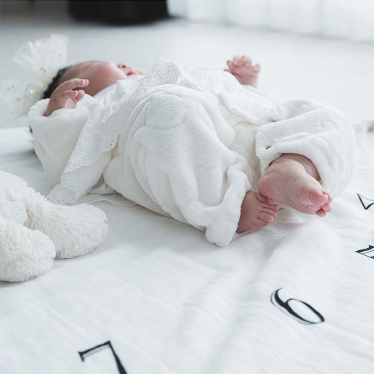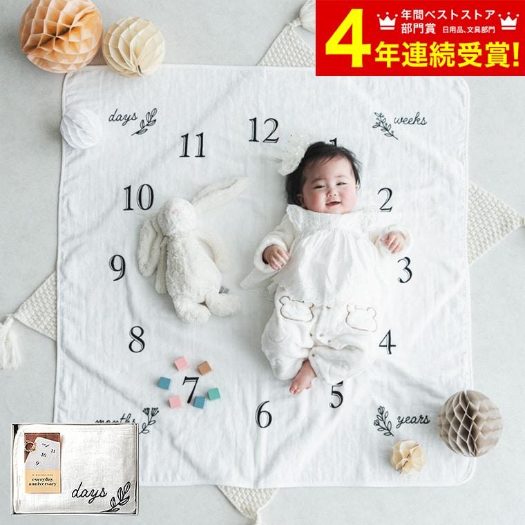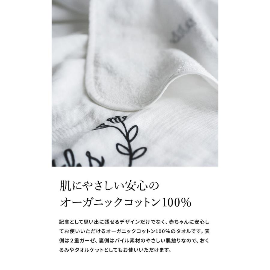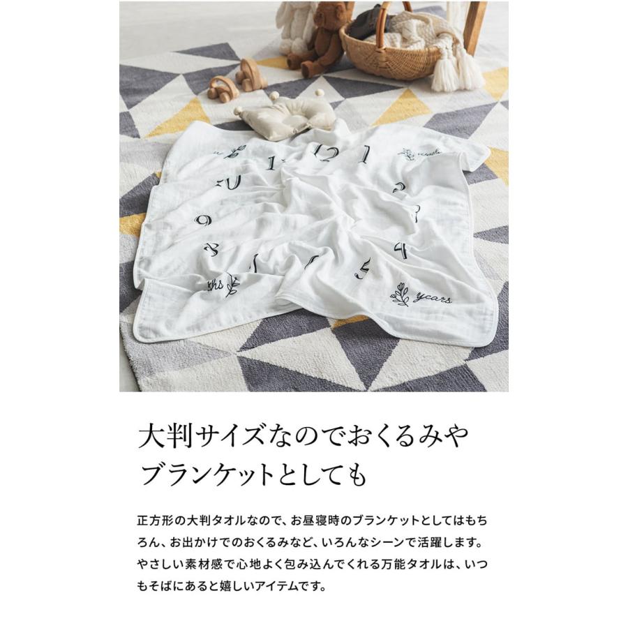 お子様の成長の記録を写真で残せる、オーガニックコットン100%の肌にやさしいガーゼパイルタオルです。月齢のところにマークを置いて赤ちゃんを寝かせれば、毎月の成長をオシャレに写真に残せるので、素敵な思い出のアルバム作りができます。出産祝いなどでおすすめのギフトです。