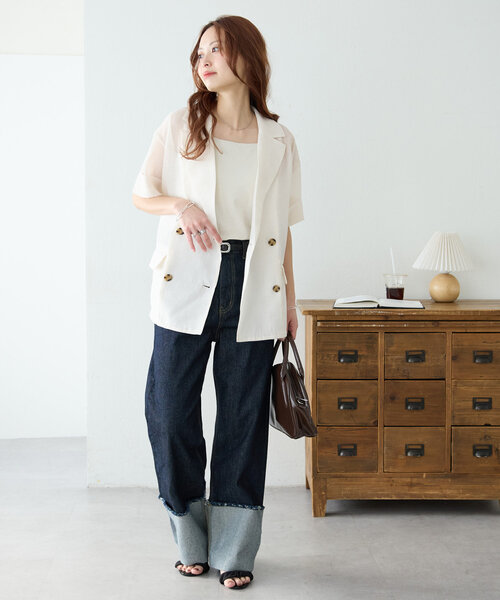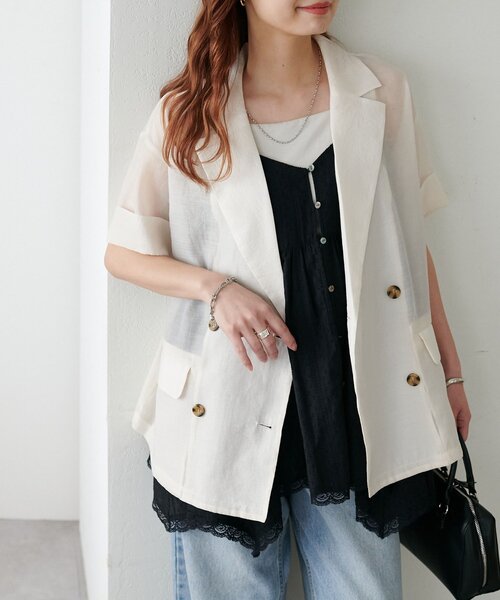 商品名:【WEB限定】半袖シアーテーラードジャケット