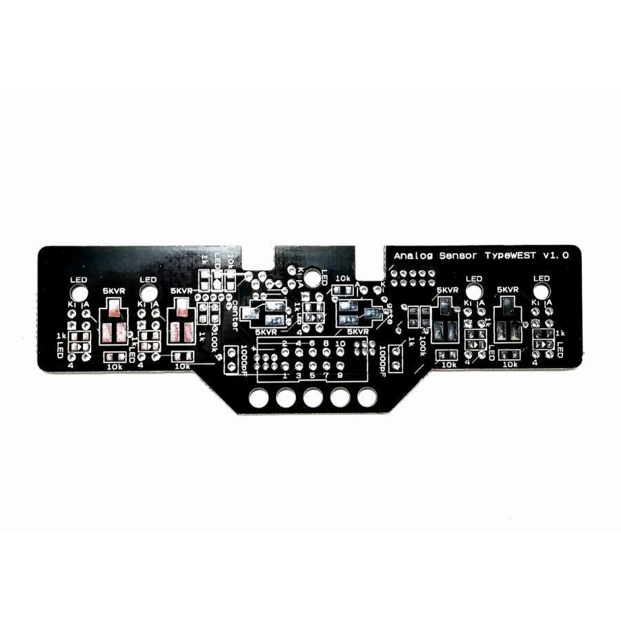 マイコンカー向けのアナログセンサ基板製作キットです。【納期】在庫切れの場合は1〜3週間ほどかかります。【特徴】・アナログセンサの間隔が42mmと広く制御しやすい仕様となっています。・板厚1.2mmで大変丈夫です。TypeWESTとは:関西生まれのアナログラインセンサーです。