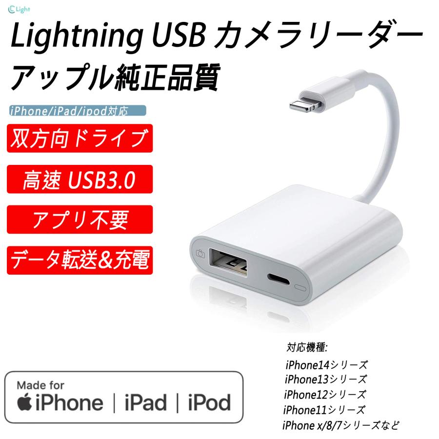 APPLE Lightning USB 3カメラリーダー カメラ変換 ライトニング アダプター USB3.0デバイス対応 写真リーダー データ転送