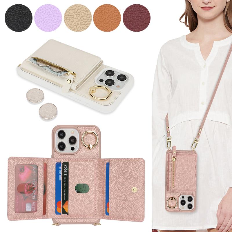 スマホケース 耐衝撃 カード収納 スタンド機能 肩掛け リング付き 携帯ケース ショルダー