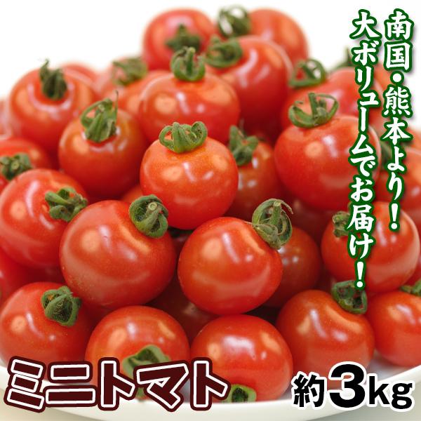 商品情報南国・熊本で育ったミニトマトを、たっぷり約3kgお届け!毎日のサラダに、お弁当に、あると便利なミニトマトをドーンと大容量で!産地:熊本県規格・サイズ:無選別入数の目安:-配送形態:段ボール箱配送温度:冷蔵便備考※ご家庭用としてご用意いたします。多少のキズ・変形果、色ムラ等はご了承ください。※入荷の状況や天候により、やや青みの残った状態でお届けする場合があります。通常配送:送料無料 北海道・沖縄:発送不可
