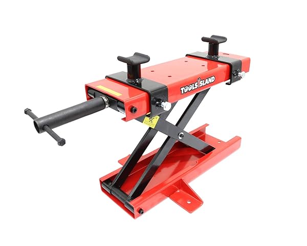 ツールズアイランド(Toolsisland) バイクジャッキ バイクリフト バイクスタンド モーターサイクルジャッキ 耐荷重500kg 専用ハンドル付き (レッド, アダプター(ショート)) TD7014-2