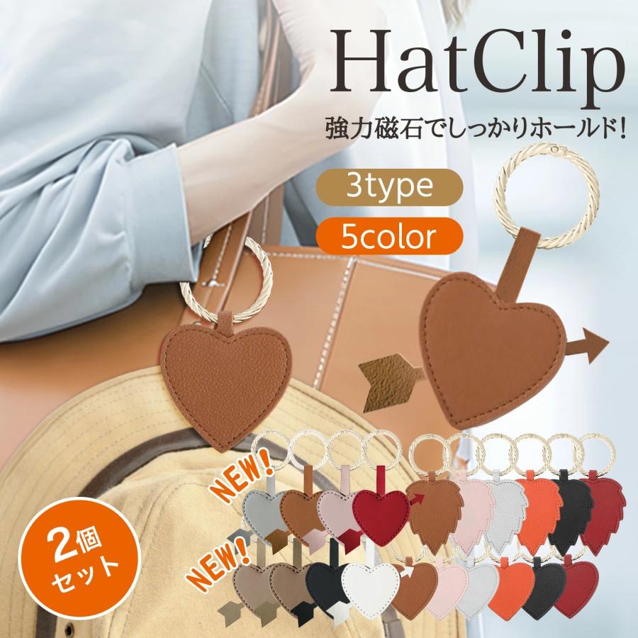 ハットクリップ キャップクリップ 2個セット 帽子クリップ 帽子収納 鞄アクセサリー 万能強力マグネット レザー 葉ハート型 持ち歩き 帽子フック 紛失防止 磁石
