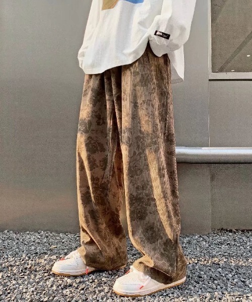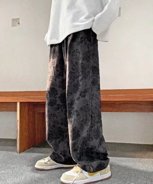 キーワード:パンツ メンズ レディース ウエストゴム ストレート フルレングス レギュラー ワイドパンツ 花柄 キレイめ ストリート 雨 夏 公園 大人カジュアル 旅行