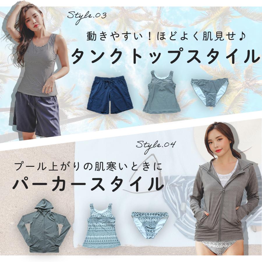 タンキニ水着とは、タンクトップとビキニという二つの言葉を組み合わせ。