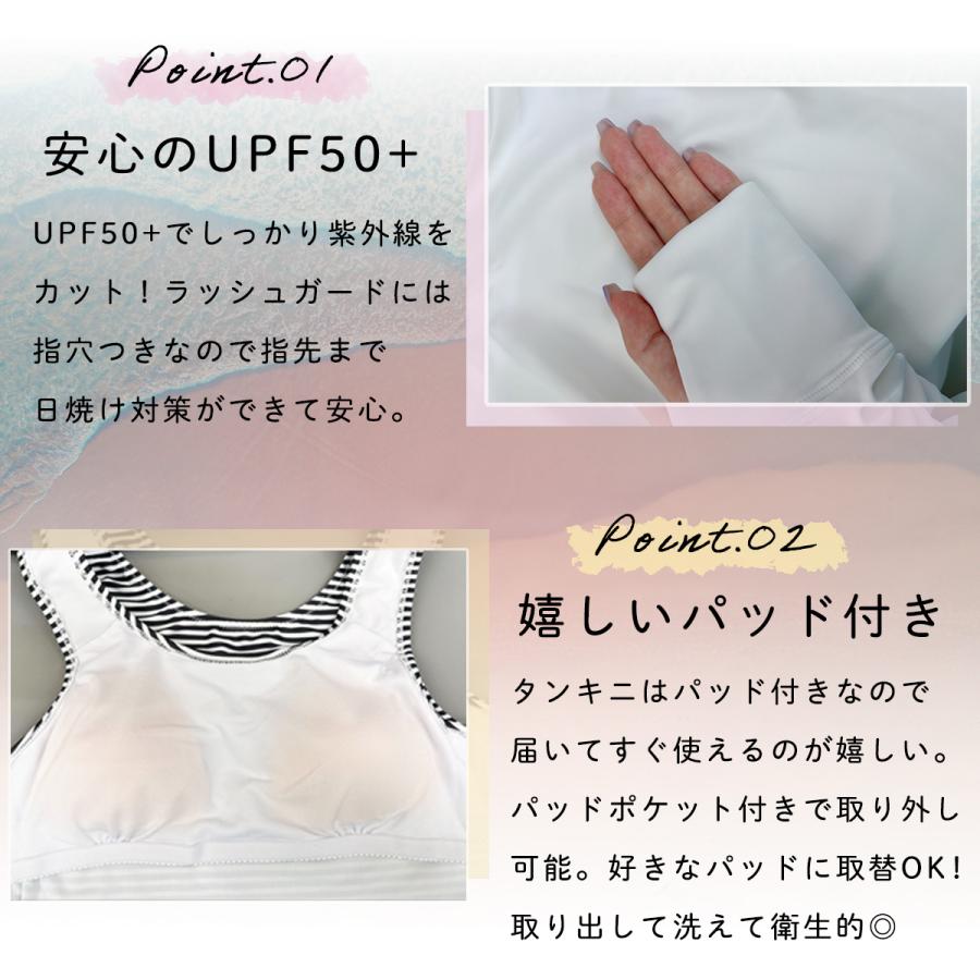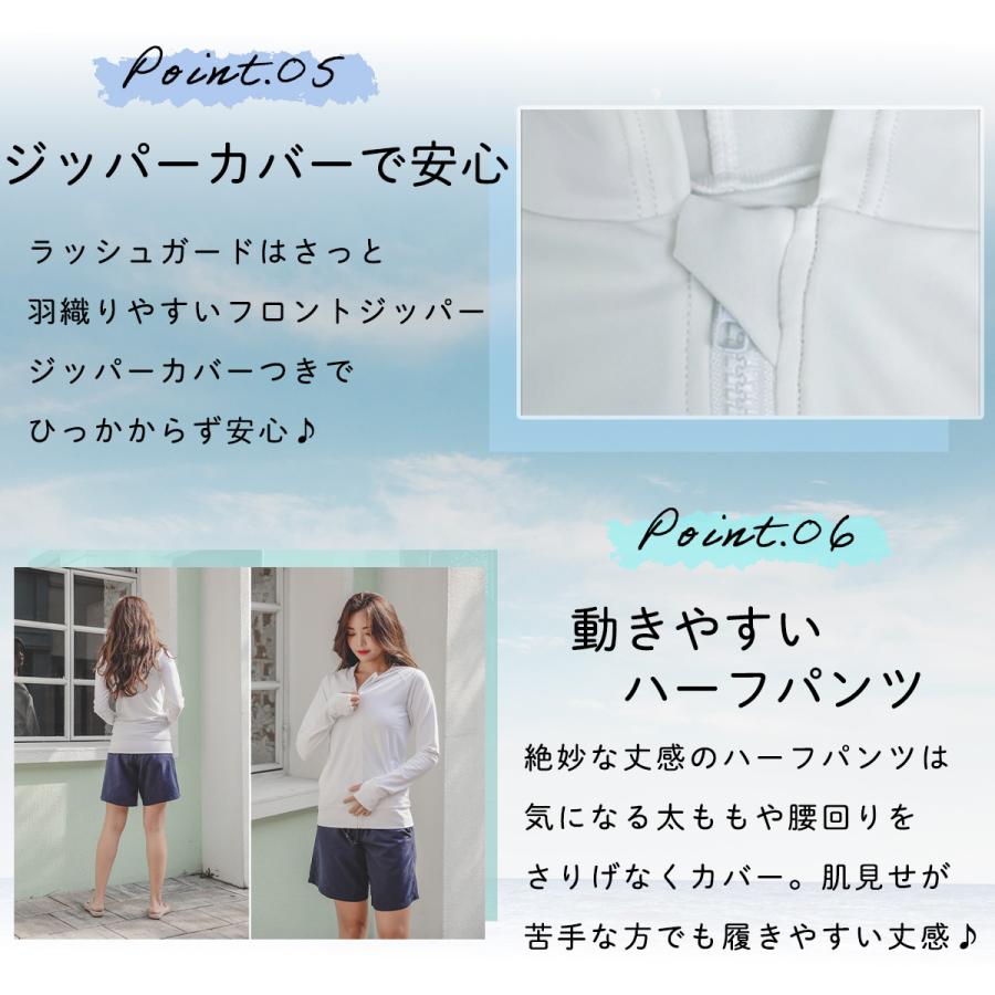 ラッシュガードは首元までジッパーが閉められるようになっており、胸元の紫外線対策もバッチリ!