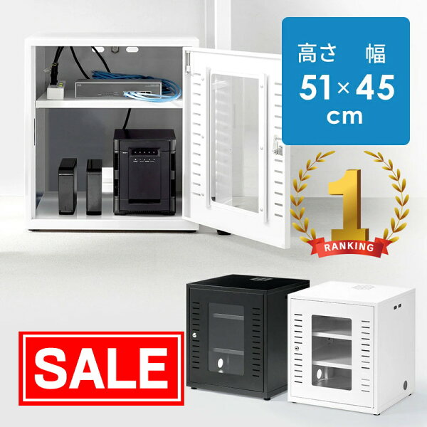 機器収納ラック 機器収納ボックス 鍵付き オフィス 幅45cm 高さ51cm 棚板2枚 ネットワーク サーバー nas ルーター LAN HUB 機器 中型 マルチ ラック 棚 放熱対策 アジャスター ホワイト 前開き 会社 テレワーク ネットワーク収納ラック ネットワーク機器 家庭 小型 パソコン黒 白