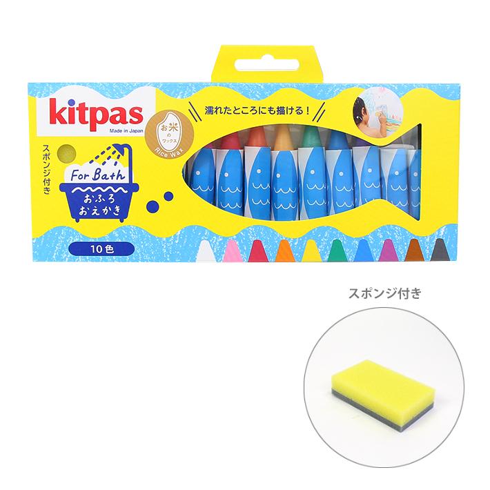日本理化学工業 RIKAGAKU おふろ用シリーズ キットパス kitpas for Bath10色セット スポンジ付き FB-10C 日本製 安心 男の子 女の子 お風呂タイム