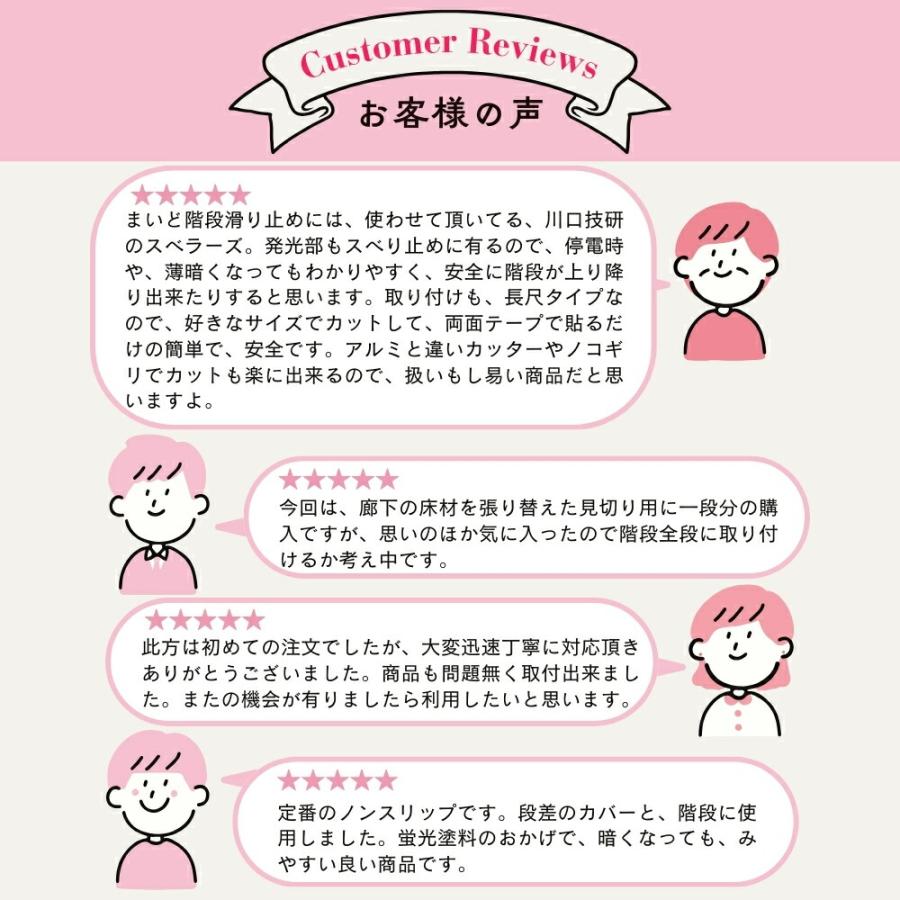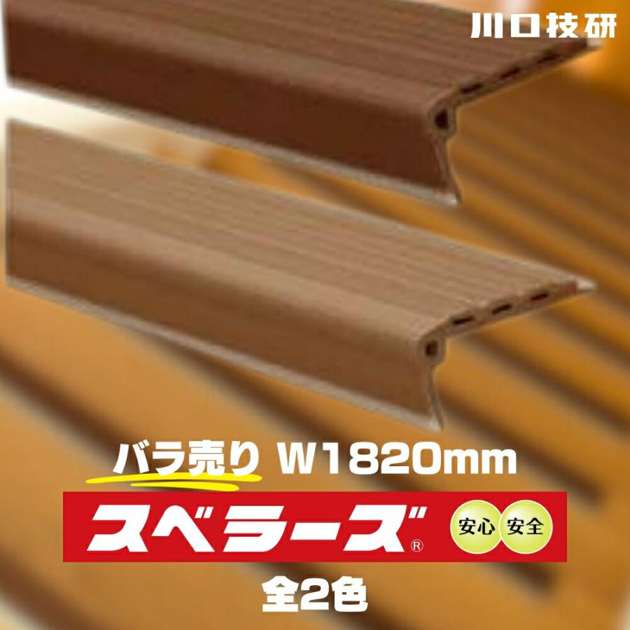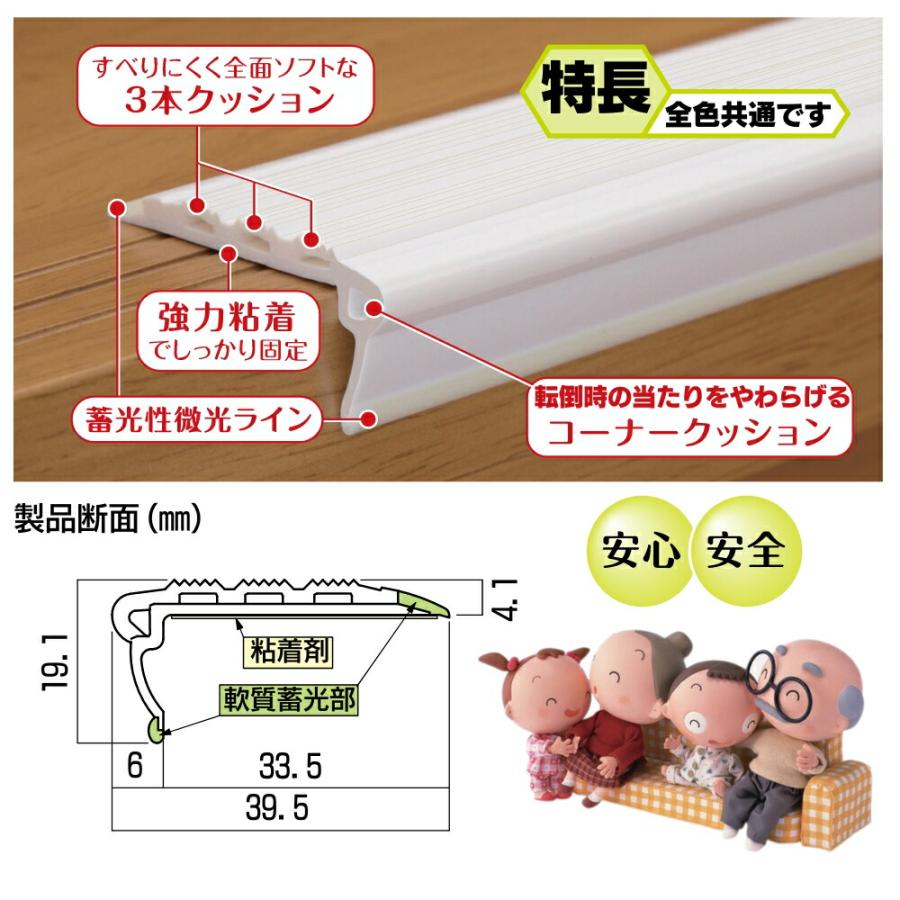 【川口技研 スベラーズ屋内用(1本入)】■すべりにくく、全面ソフトな3本のクッション。■強力粘着。(木製階段用)■消灯・停電時に一時的に光る2本の蓄光性微光ライン。■当りをやわらげるコーナークッション。■カッター等で階段の幅にあわせてカットできます。サイズ:D39.5×H19.1×厚み3.9mm長さ:1820mm色:うす茶、茶材質:軟質PVC樹脂入数:1本階段 滑り 長尺 すべり スベリ 転倒 防止 横転 クッション 材料 部材 diy リフォーム 介護 単品