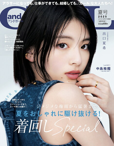 通常版のカバーは、【出口夏希さん】が初登場!!!============【大特集】\ジメジメな梅雨から猛暑まで/この夏をおしゃれに駆け抜ける!着回しSpecialPART1 ヘルシー営業OL・江藤百香の「賢くおしゃれ!」な30days着回しPART2 ミーハーOL・鈴木ゆうかの「いつだってキラキラ」な30days着回しPART3 小林由依の「毎日TシャツLOVE?」な30days着回しPART4 宮田聡子の14days夏休みコーディネート inOKINAWA============服がシンプルになる夏こそ、憧れブランドのファインジュエリーに頼りたい!feat.内田理央Q&Aで鉄板コーデに最短アプローチ!誰でもパパッとムードが香る?この夏、おしゃれな人が着てるのは「シャレ感アースカラー」「涼しげモノトーン」あえて袖あり!機能で快適!etc. 暑すぎる季節どう乗り切る?暑さに負けない!なぎちゃんOL in Summer============andGIRL賞を受賞した期待のニューフェイス乃木坂46 6期生 瀬戸口心月(せとぐち・みつき)インタビュー============そのほかにも、最大級に可愛い雨の日コーデetc.梅雨のジメジメから猛暑の夏まで、andGIRLと一緒に夏を楽しく乗り切ろう?※本誌・増刊の内容は同じです。表紙違いとなります。