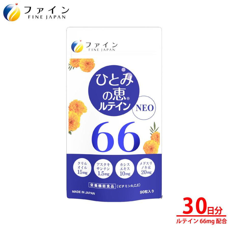 ファイン(FINE JAPAN) ルテイン ひとみの恵 ルテイン66 30日分(90粒) アスタキサンチン ゼアキサンチン クリルオイル 国内生産×2個