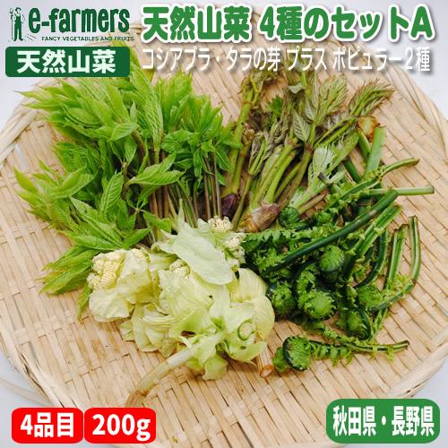 天然山菜4種のセットA 送料無料 コシアブラとタラの芽 プラス ポピュラーな2種のアソート