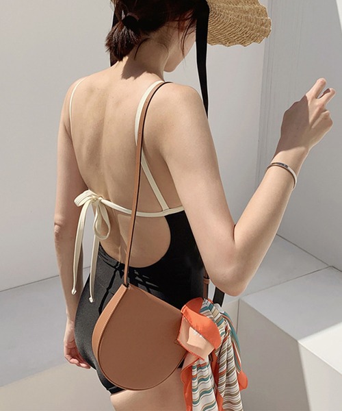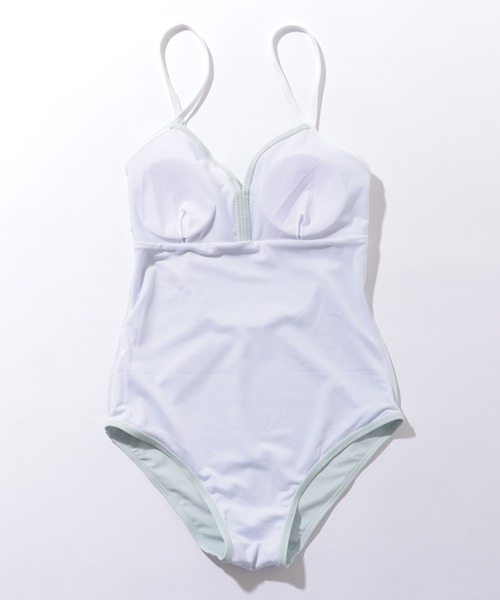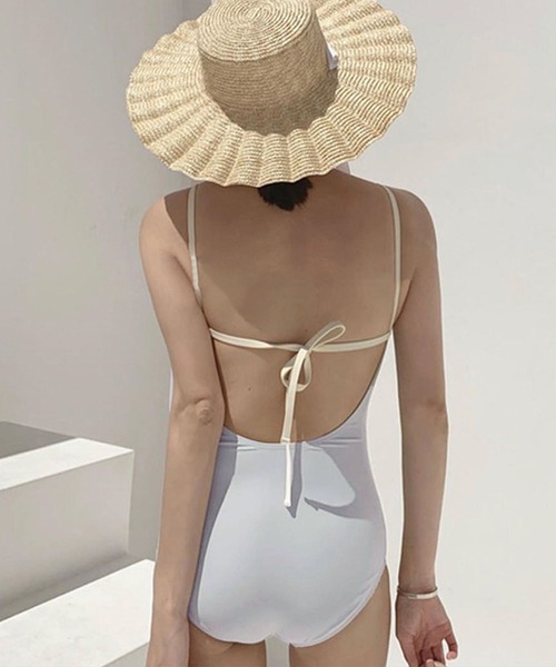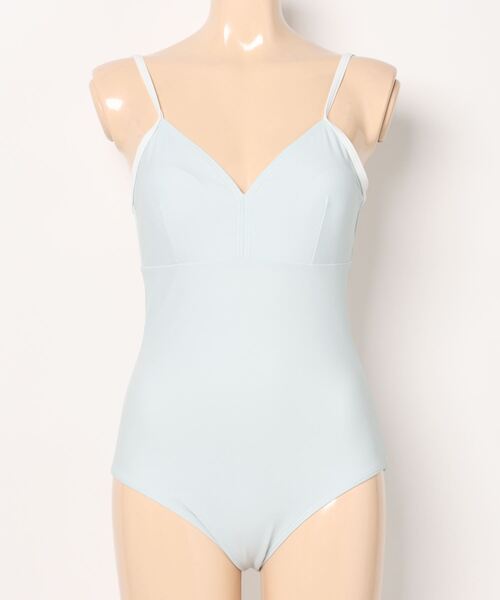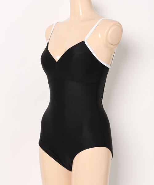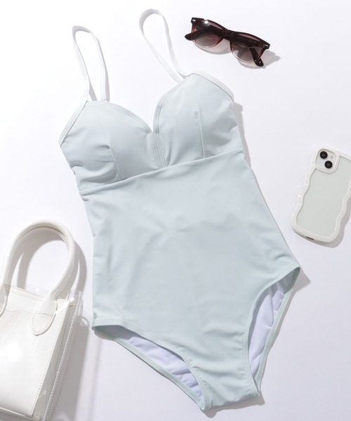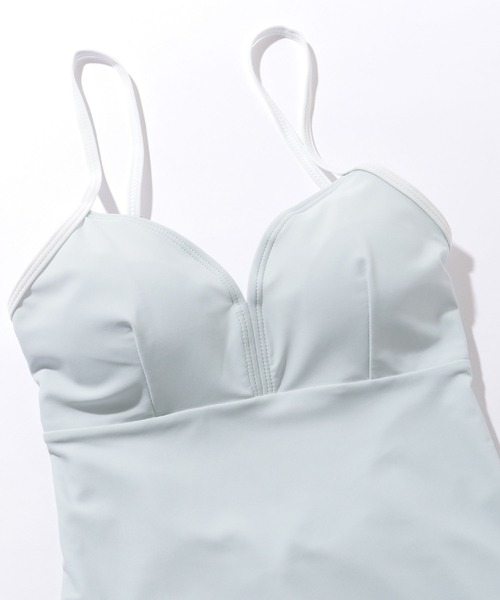 商品名:Vネック 配色 パイピング ワンピース スイムウエア
