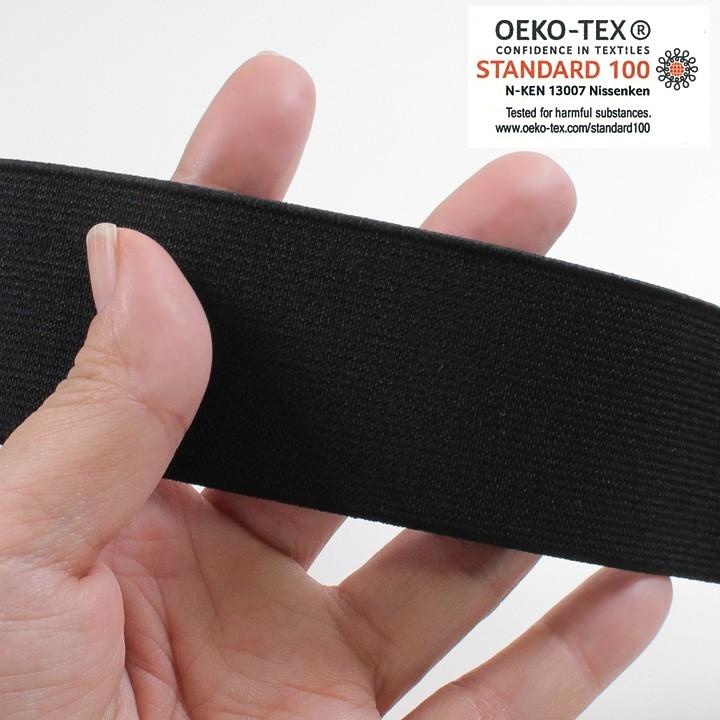 ドライクリーニング対応のポリウレタン弾性糸を使用した織ゴムです。