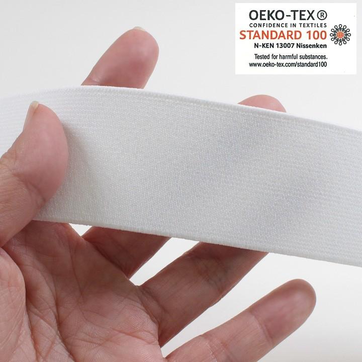ドライクリーニング対応のポリウレタン弾性糸を使用した織ゴムです。
