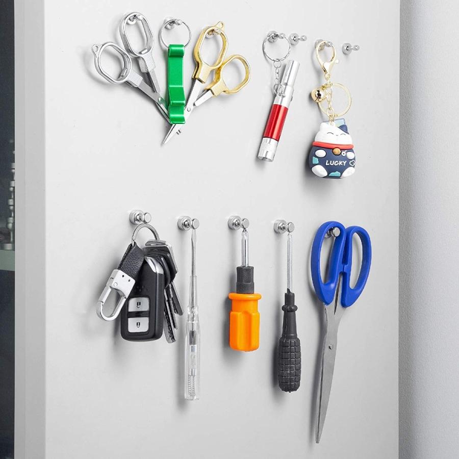 【幅広い用途】ミニマグネットフックとして、家庭、オフィス、学校、倉庫、スーパーなどに活用できます。 ホワイトペーパー、冷蔵庫、掲示板、磁気地図、カレンダー、ロッカー、ファイリングキャビネット、その他の磁気面にプリンタ用紙、メモ、写真を保持するのに最適です。傘、鍵、焼き具、調理道具、台所用タオルに最適で、もっと用途が見つかるのを楽しむツールとしても人気です。