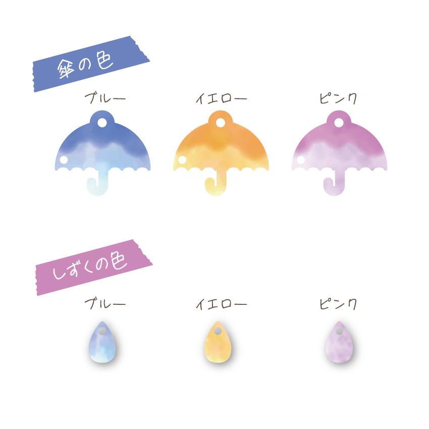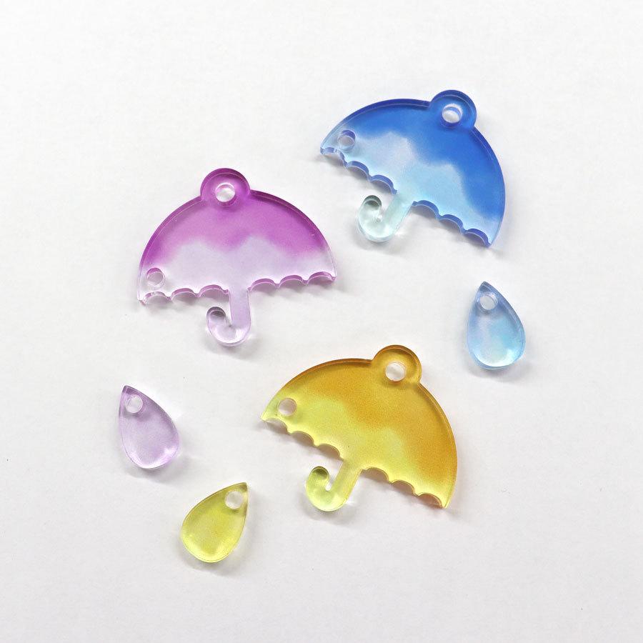 ■サイズ よこ31mm×たて33mm<br>アクリル板にUVインクで印刷しております。シリコンゴム付きシリコンゴム(1個):内径15.8mm 太さ3mm傘の色・しずくの色・シリコンゴムのお色が選べます。貴方に合った色の組み合わせをお楽しみください。