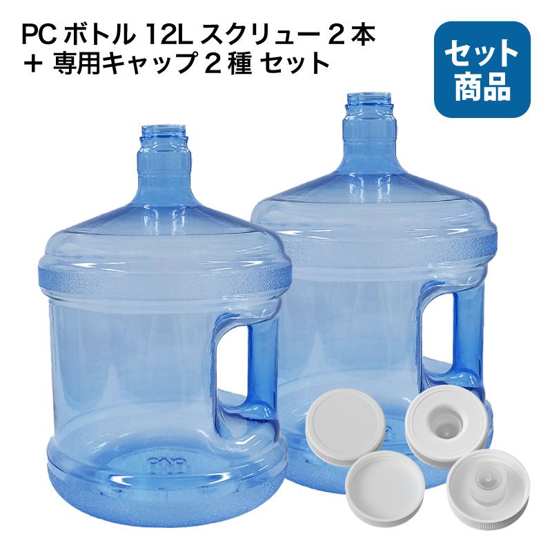 ウォーターサーバー用PCボトル 12L スクリュー 2本+専用キャップ 2種 セット