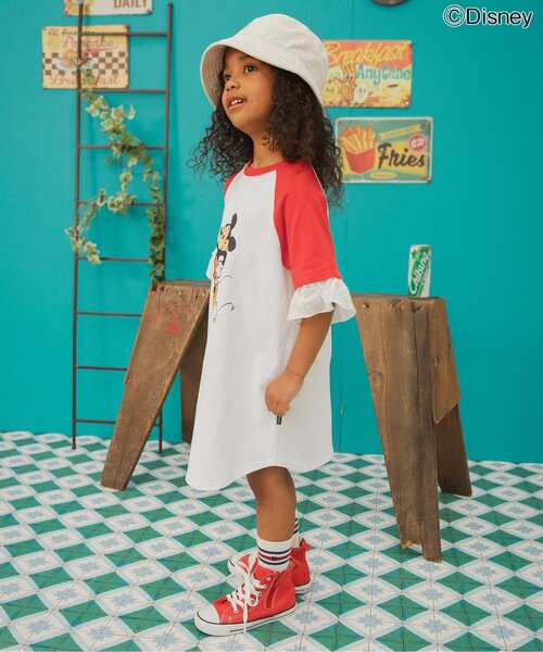 キーワード:ワンピース キッズ 子供服 女の子 プリント 半袖 膝丈 ストリート ピクニック レジャー ベーシック 夏 公園 別注 コラボ 保育園