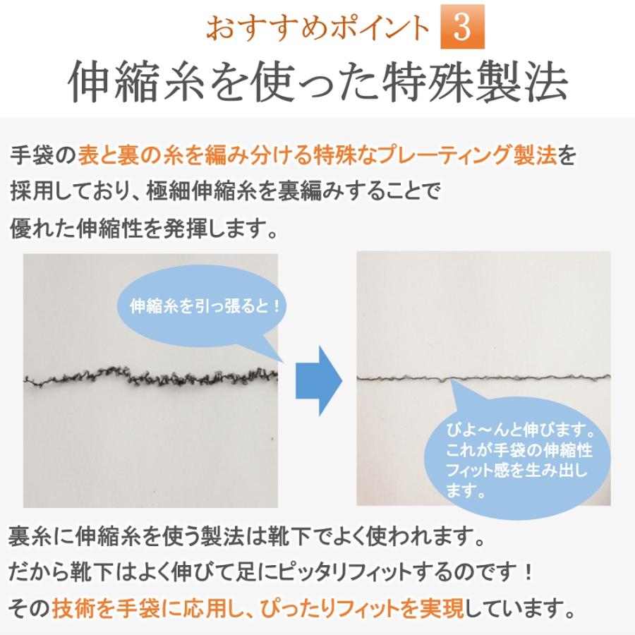 靴下のように裏糸を使う特殊な製法により、高い伸縮性を実現し、ぴったりフィットの着用感を実現しています。