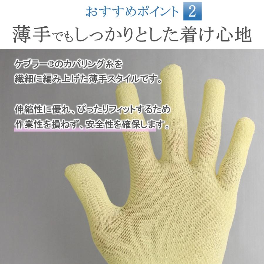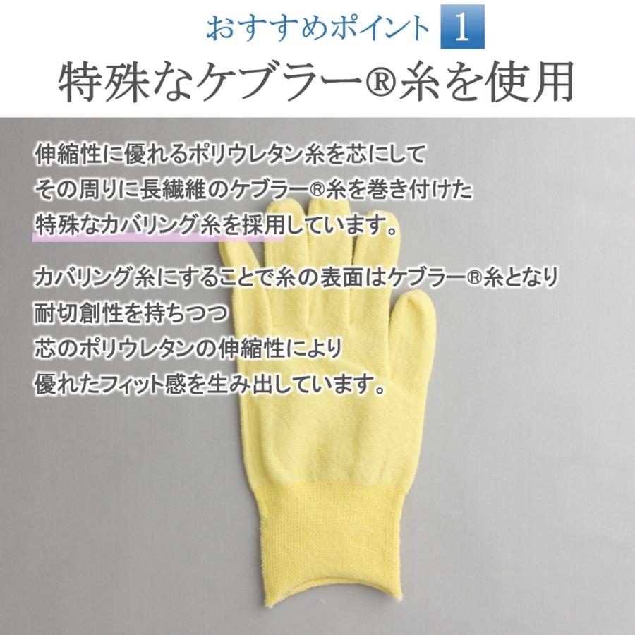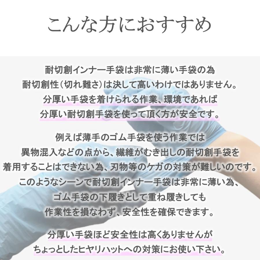 非常に薄い使い捨て手袋(ニトリル、ラテックス、PE等)をご使用時にインナー手袋として着用することで手を護ります。■素材 13ゲージ(ケブラー94%、ポリウレタン6%)■サイズ/フリー ※よく伸びてぴったりフィットしますので男性から女性までご使用頂けます。■用途 食品、調理、介護、医療、清掃、お掃除 防刃 耐切創 安全 保護 ケブラー 手袋 グローブ アラミド インナー手袋 下履き